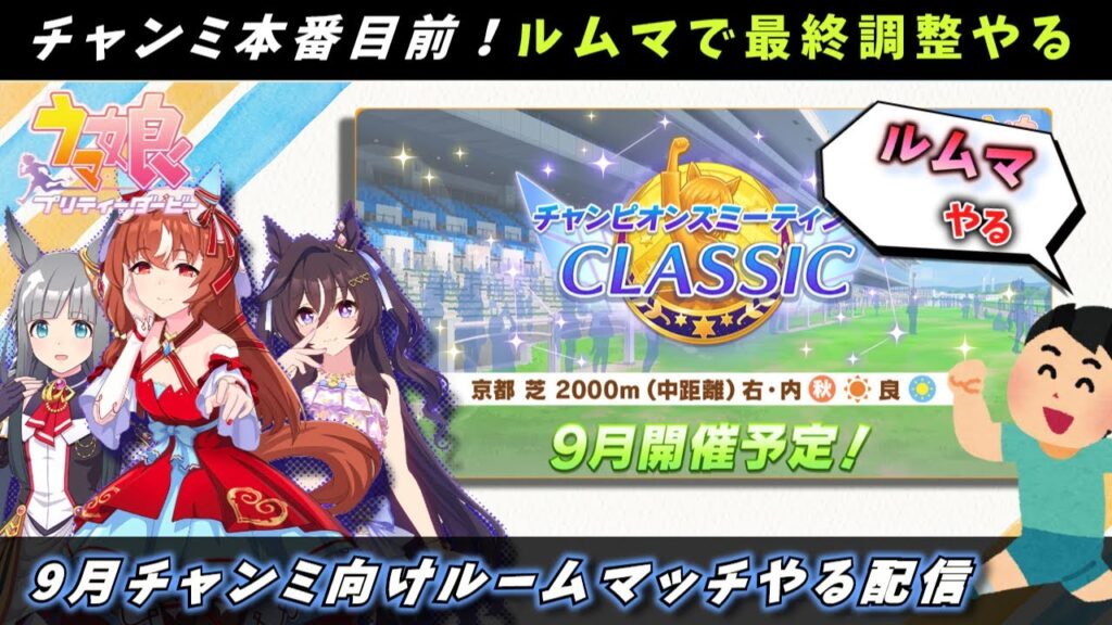 【ルームマッチ】誰でもOK!9月中距離チャンミ向けルムマやる配信。1人3体出し【ウマ娘/Umamusume】 日本語/EN